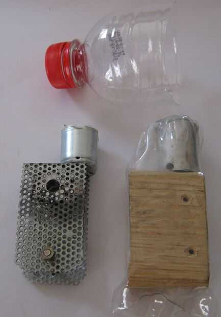 - Una botella de PET fue contraído para proporcionar una cubierta de polvo/lluvia para el montaje del motor/del engranaje de calor.