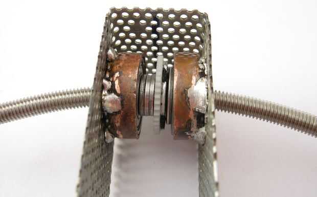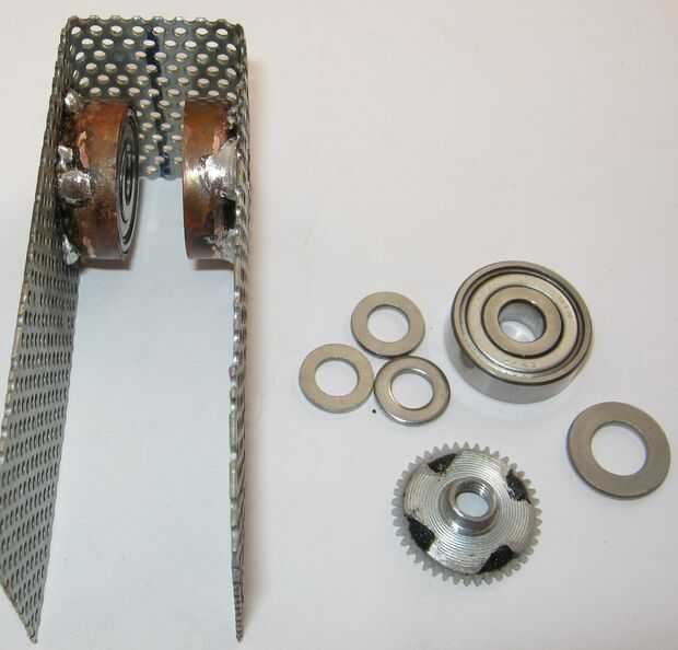 - Retenedores en forma de 20 m m del cojinete casquillos de extremo de tubo de cobre fueron soldados al soporte mientras que era recto.