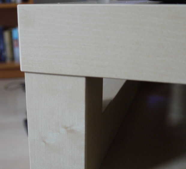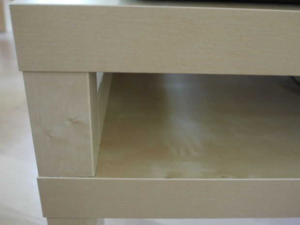 Los cuatro segmentos de la pata corta tienen el MDF con orificios en un lado. Coloque ese lado en la parte inferior de un tablero con el estándar doble Ikea falta pierna tornillos de fijación y hacerlo para todos los cuatro segmentos cortos. Asegúrese de que los segmentos son todos atornillados igualmente duro.