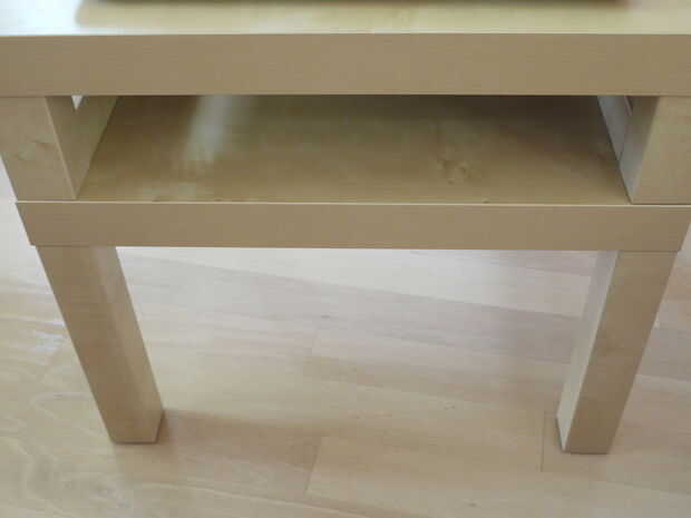 Si lo desea, se puede decir que termines ahora. La tabla resultante con un estante tiene una mirada elegante de Ikea-como. (Usted puede también hacerlo un poco más alto usando las piernas sin cortar en lugar de cortar los.)