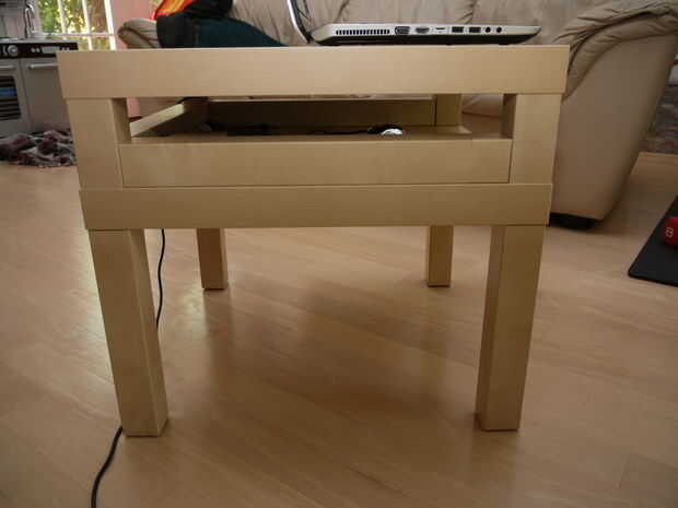 He añadido bordes levantados a la cortando el resto falta cuatro patas para llenar el espacio entre los soportes verticales en tres de los cuatro lados de la mesa.