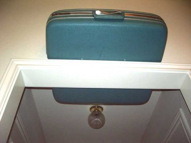 Montara estas mitades encima de un umbral, por lo que la maleta parece montarse a través de la pared, proporcionando una plataforma en ambos lados de la habitación.