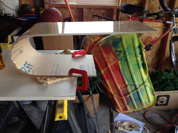 poner un peso en la parte superior y utilizar la pistola de calor en el exterior de la curva. Se trata de un poco de conjeturas: calentar y doblar hasta que ve bien, dejar enfriar y luego quitar el peso. Si está lo suficientemente cerca, pasar el siguiente paso; de lo contrario, a seguir intentándolo hasta llegar justo.