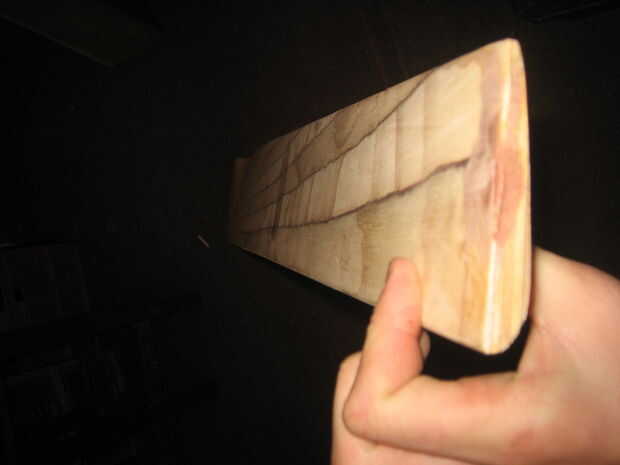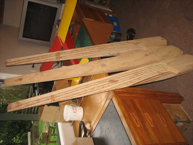 El diseño de las cuchillas puede encontrarse aquí http://www.otherpower.com/bladecarving.html en esta las hojas están hechas de madera maciza para hacer una hoja más fuerte intente laminando varias piezas de madera junto o capa de madera contrachapada como yo lo hice.