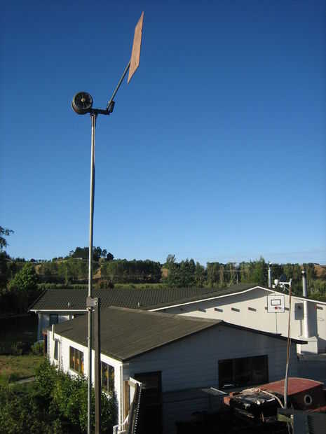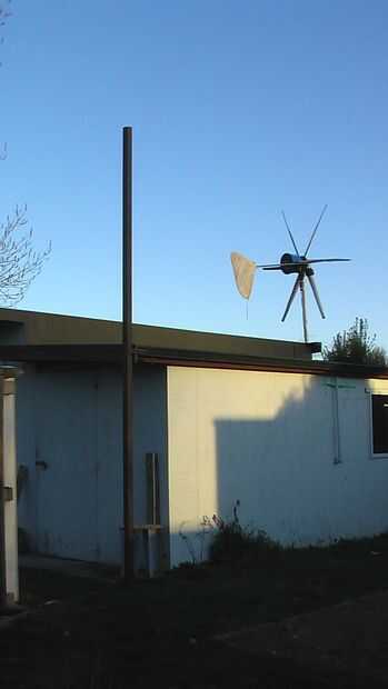 esto fue construida como una alondra, un caprichoso intento de recuperar algunos de los cientos de dólares gastan en aire acondicionado cada año. Es una turbina eólica accionada por el ventilador del compresor de mi aparato de aire acondicionado.Pero