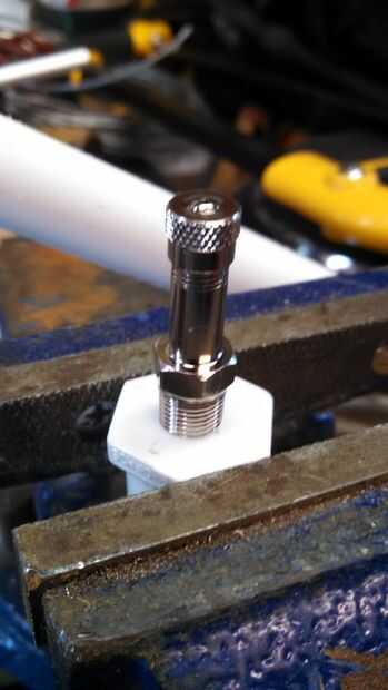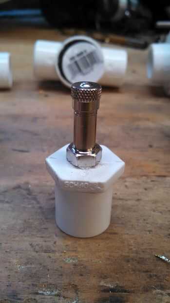 La manera de de que encontrar que el tamaño correcto es agujeros de taladro en madera primero y prueba ajuste. Voy a hacer que los hilos que consiga un buen agarre en la madera como enroscarlo en. Una vez que encuentre el tamaño adecuado y puede perforar las tapas y las válvulas. Si la fuga de accesorios utilice alguna cinta y masilla para sellarla.