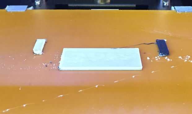 La primera foto de arriba muestra que la impresión de una pausa después de la primera capa. Obviamente puedes ver las dos extrusoras áreas así como la primera capa ha sido impreso. Hay todavía un poco de lodo que deba ser resuelto.