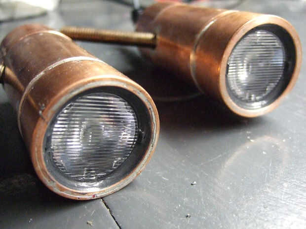 Una vez que los LEDs son cableados y probados (Asegúrese de enhebrar los cables a través de varios agujeros en las cubiertas antes de soldar) mezclar algunas epoxi eléctrica o térmicamente conductor y pegar los LEDs en las viviendas. Usé los sostenedores de la lente y una banda de caucho aplicar presión constante y el mantener los LEDs centrados el epoxi curado. Si usas un lente elíptico o no simétrica entonces usted necesitará tener cuidado cómo el reloj del LED en la carcasa desde el portalente solo mantiene la lente una forma. En el caso de la lente elíptica, las líneas en la parte frontal de la lente deben ser perpendicular al suelo cuando se monta en la moto así que me que se rotaron correctamente antes de la polimerización del adhesivo.