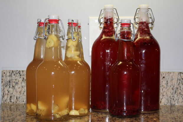 Llevar botellas y poner en el mismo punto su dejar su fermento de kombucha. Esto iniciará el proceso de doble fermentación. Ahora, la levadura extra en la mezcla fermento lo agregó para sazonar, captura el sabor. Doble fermentación es también una gran manera de crear un kombucha carbonatada.