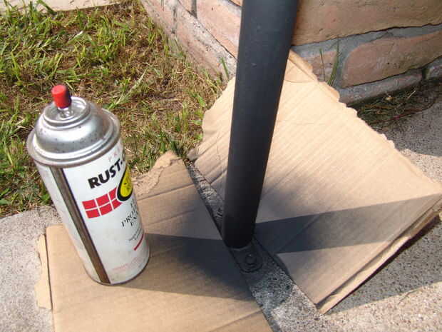 9) decidí pintar mi polo negro plano. Se ve mejor que el galvanizado más polluelos cavar realmente polos negro. Si desea que su polo negro, ahora es un buen momento para rociarlo. Usé cinta de pintor para enmascarar los collarines de tope de acero inoxidable.