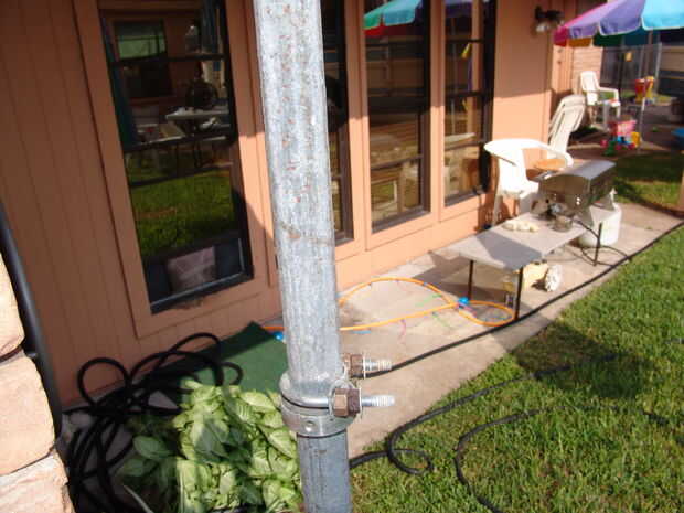 3) te recomiendo que termines todos los pasos necesarios para montar el carrete superior al polo, incluyendo cargar la manguera de jardín, antes de decidir donde desea que la altura del carrete de abajo que.