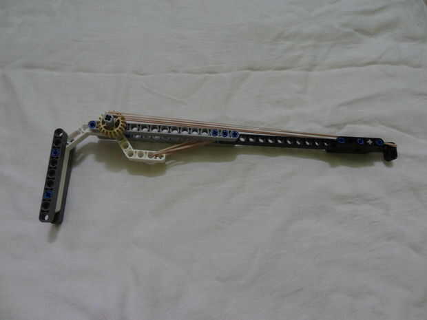 esta es un arma simple hecho con piezas de Lego technic. Se inspira en http://www.youtube.com/watch?v=dLSfBnGj2VQ. He hecho algunas mejoras para aumentar su alcance y le añadió un segundo disparo.