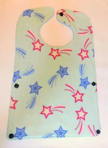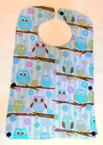 Su patrón parece ser bastante único ya que incluye cuatro coser broches de presión para crear un pliegue para recoger las migas y todos esos pedacitos dribbly! Su también muy un gran babero que es útil especialmente cuando los bebés sólo obtienen la caída de los sólidos y después cuando empiezan a alimentarse!