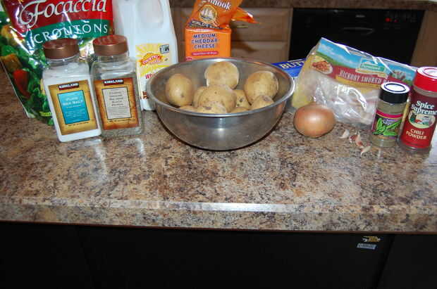 Un puñado de picatostes (mejor todavía, las migas en la parte inferior de la bolsa.  Te se machaca los picatostes más adelante de todos modos)