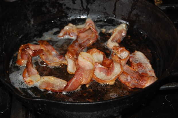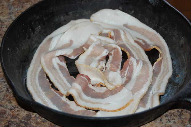 Guardar la grasa de tocino en la sartén!  Uno: Tiene un sabor impresionante. Dos: Usted va a utilizarlo más tarde.