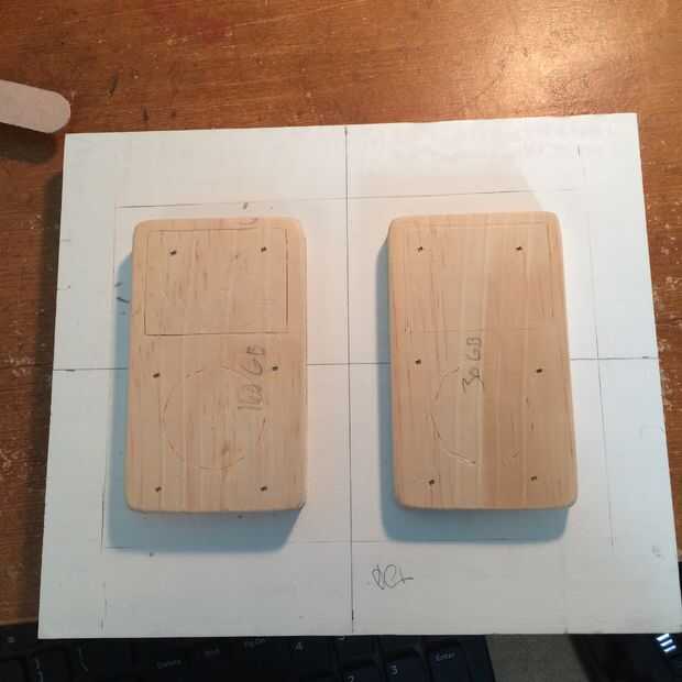 Ya que no poseo estos ipods, tuve que hacer dinero para la formación de mojado. Encuentra las dimensiones de la fábrica para los dos modelos diferentes y comenzó en hacer la pelota para el de 30GB y 160GB. Muy cuidadosamente, usando una cepilladora de espesor, cepillada por un pedazo de pino para el 30 y el 160 a sus respectivos espesores. Luego, usando el contorno o el ipod corte, trazó la forma a la madera y recórtalo. Utilicé una sierra de mesa y un mitresaw para el straightcuts y una vertical lijadora de disco para las esquinas, pero eso es sólo mi técnica. Podría hacerlo con un serrucho y arena papel si precisa. Entonces rompí el borde de cada forma de ipod, por lo que no hay las esquinas agudas.