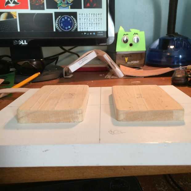 Una vez todo uniforme, he escogido el lado más suave y utiliza un router con un roundover 1/4 a un lado de la pelota superior. Esto hace la forma de cuero en un radio incluso fuera del los ipods. Lijar un poco toma cualquier imperfección, y los bucks se hacen.