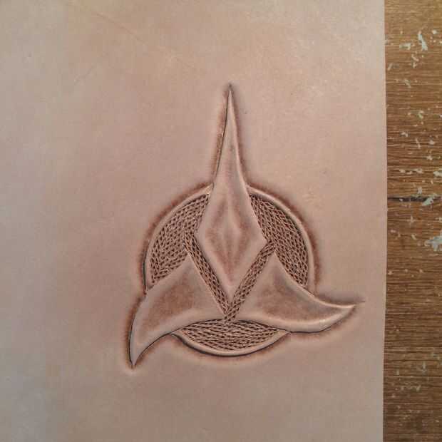 Photoshop mi imagen tamaño, e imprimir en papel de transparencia. Me moje el cuero, transferir el diseño, cuchillo del eslabón giratorio, bisel, fondo y acento. Easy peasy. (es broma)