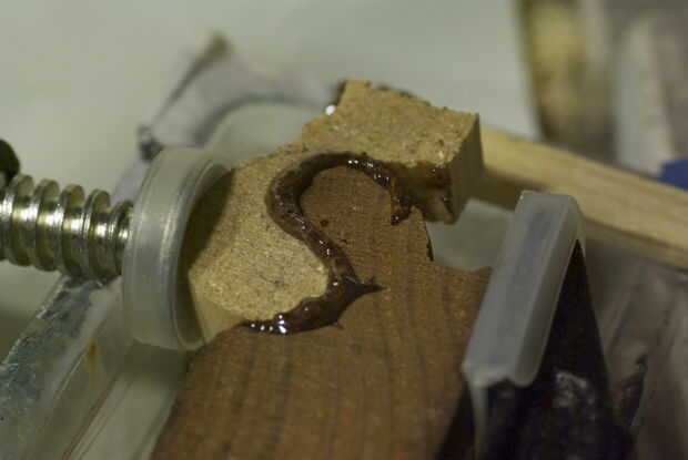 1. Con la palanca de mezcla poner mucho pegamento en los lados interiores de las piezas de gota-como (en dos de las piezas);