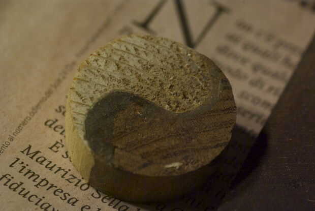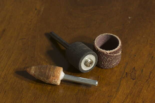 traté de desechar el exceso de pegamento con una Dremel pulido piedra poco (n. 952), pero sólo conseguí la broca todo sucio con pegamento y se ha vuelto inútil. Así que tuve que cortar con un cuchillo de la manía. Ver la foto de la broca para tener una idea de esto.