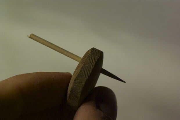 Luego pongo el palillo por el agujero en el lado oscuro y cortado que cerca de la superficie. Después de un poco de lo presentación otra vez mezcla en la superficie de la pieza.