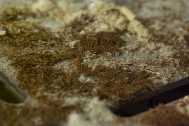 guardé un poco de aserrín para mezclar con el pegamento de epoxy para rellenar los huecos sobrados. Mezclar el serrín y el epóxido tiene que utilizar un exceso de epoxi porque es más manejable.
