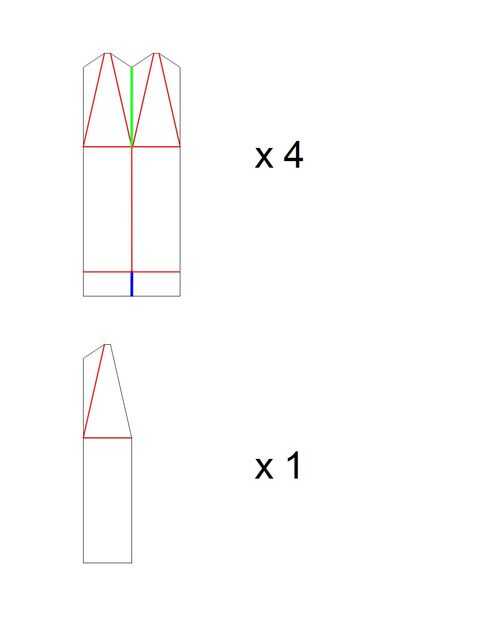 Las líneas rojas en la figura se anotaron en el exterior (el lado con las líneas trazadas). La línea verde se anotó en el interior. La línea azul se corta completamente a través. Doble todas las líneas anotadas para aflojar para arriba.