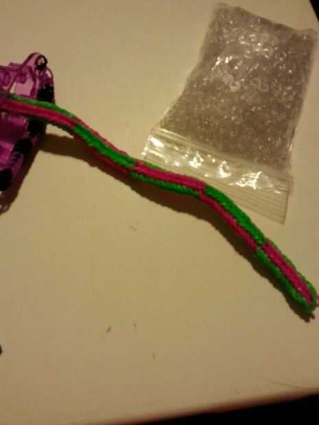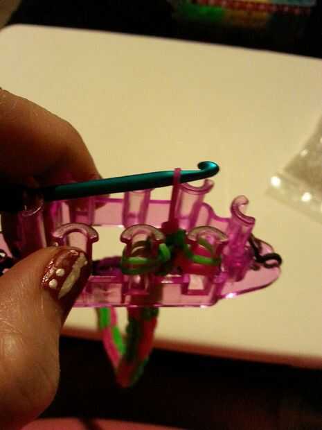 bueno primero le mostrará cómo hacer un triple solo entonces le mostrará cómo hacer un solo y conectarse a la triple a hacer una pulseraPaso 1: Reunir tus cosas Necesita1. algunas bandas de goma (yo usé rojo y verde2. el telar3. un gancho de crochet