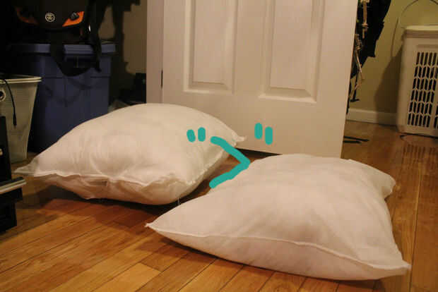 Hacer un acogedor calientapiésEN MENOS DE 5 MINUTOSCON COSAS TIENES AHORA...1) consigue una almohada de la cama (quitar algunos del relleno si es demasiado grueso)2) doble la almohada por la mitad para que los lados pequeños toquen (como doblar una b