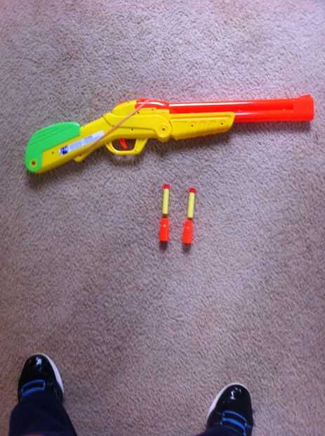 Este instructable le dirá cómo hacer su doble arma de tiro a fuegopequeñas bolas o barras aún verdes de KVG.Todo lo que necesita:Nerf dardos de tm.Tm de blaster Shot doble de aireConchas para la pistola.Una paja gruesa que apenas cabe la cáscara.(Deb