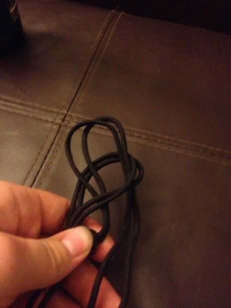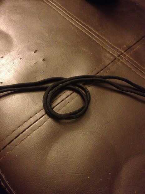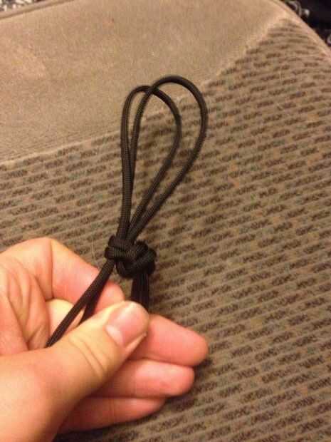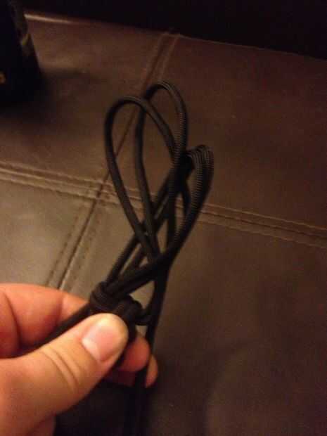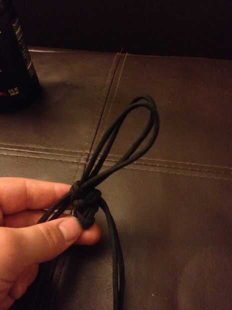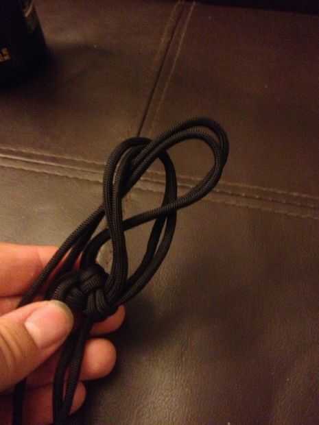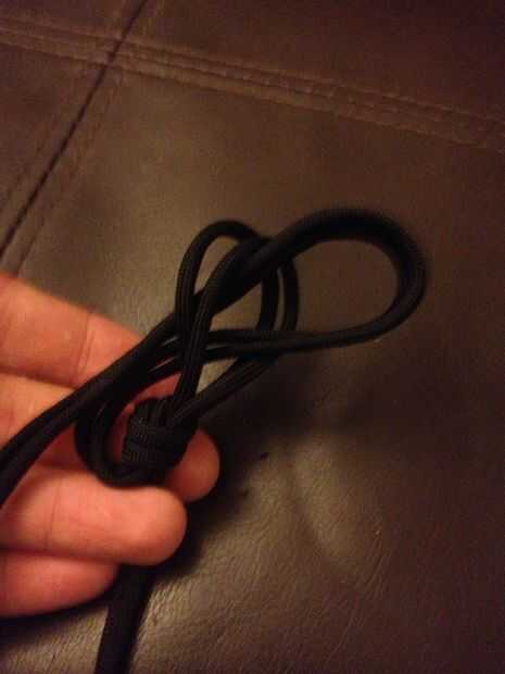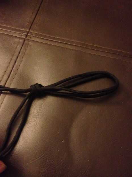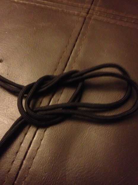 Hacer un círculo con el cordón. Hacer un lazo con la derecha y tire a través (revisión de fotografías si no entiendes); apriete. Hacer un lazo con la izquierda y tire a través del lazo de derecha ya existente; apriete. Hacer un lazo con la derecha y tire a través del lazo izquierdo; apriete. Repetición: lazo izquierdo bucle derecho; apriete. Bucle derecha izquierda; apriete.