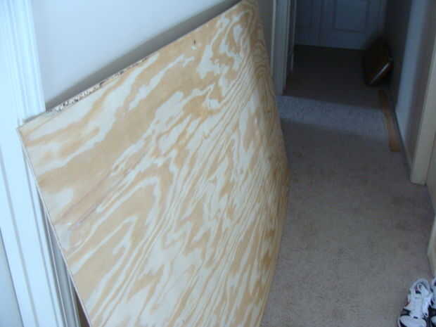 Con dos hojas de madera contrachapada y un puñado de tornillos, puede hacer una camita de niño bonito. Este diseño adapta a un colchón de la cuna (aproximadamente 52" larga), que durará al niño promedio en la escuela primaria.Mi niño acaba de cumplir