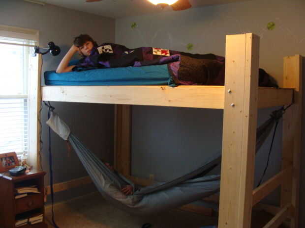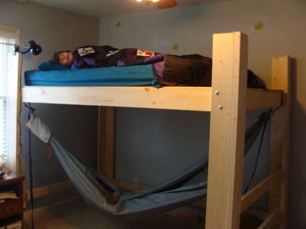 Mi hija siempre ha tenido su propio cuarto, pero envidia de la litera de sus hermanos. Así que construí le una cama que le gusta una nube flotante, que la hizo feliz y había creado un poco más espacio en su habitación. Utiliza algunos de los principi