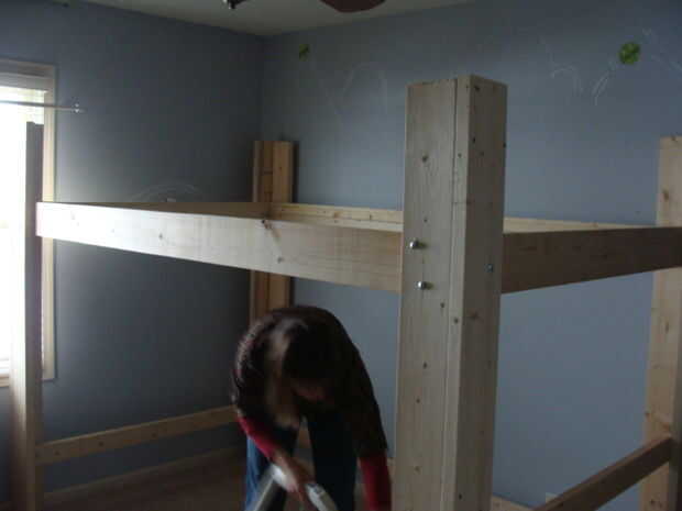 cómo hacer un loft de un dormitorio, o cualquier otro espacio reducido!Dimensiones acomodarán un colchón extra doble con 1' extra en cada lado.Estamos haciendo estos lofts llevar al estado de Iowa mientras vivía en un dormitorio. Seremos capaces de p
