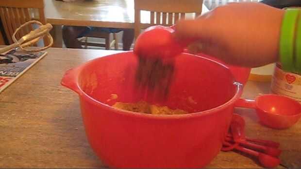 En un bol mezclar la harina, el azúcar y la avena. Utilizar un mezclador de repostería * para cortar en la mantequilla hasta que se parece a las migas. luego añadir los trozos de chocolate. espolvorear esta mezcla sobre la tarta y hornee a 350 grados durante 40-45 minutos. Sirve diez.