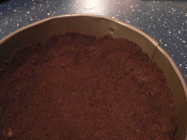 Una vez que usted tiene su miga, presionan a lo largo de la parte inferior y a mitad de camino hacia los lados de su molde springform de 9".