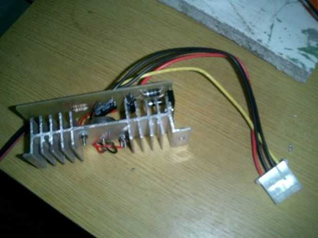Usando el diagrama, hacer el PCB, se puede ver en mi anterior blog. Coloque el disipador de calor suficiente para todos los IC mantener un calor normal. Mi diseño de PCB para el diagrama, este se ajusta con mi plan de poner todos los reguladores y transistor en un disipador de calor. Yo había atornillado todo calor generando componentes usando solamente un disipador de calor, como se puede ver, el centro es el transistor MJ2955, dos 7805 en el lado derecho y el 7812 a la izquierda. Soldamos todos los componentes incluyendo el conector MOLEX para el CD-ROM y este proyecto está listo para la prueba.