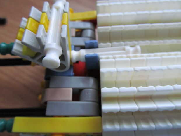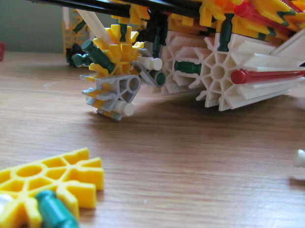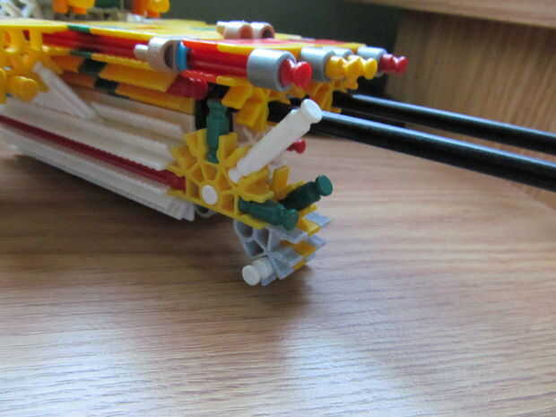 2. desconectar una de las piezas amarillas sobre la parte principal e inserte el disparador sencillo.