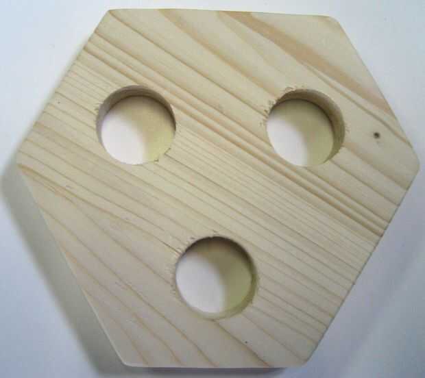 Vio tres círculos en el tablero de madera con una sierra de agujero de 40 mm.