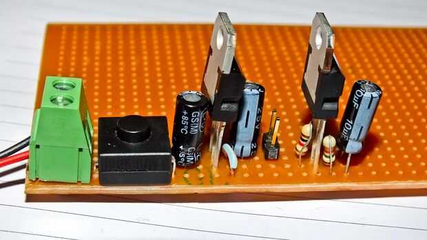 Nota que he puesto un dos hombres pines después el circuito LM7805, por lo que yo puedo dibujar una alimentación de 5V regulada de estos pernos para cualquier otra cosa fuera de mi placa o fuente de 5V a la Junta de una fuente de alimentación regulada como cargadores de teléfono móvil/tablet y verrugas de la pared, si lo necesito. También puedo usar estos pines para conectar un LED para indicar la potencia, no me gusta mis consejos para tener un indicador permanente encendida constantemente.
