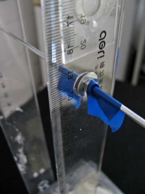 El péndulo es simplemente una regla de acrílico con un agujero perforado cerca de un tercio del camino hacia abajo desde la parte superior para servir como el pivote. Montar los imanes en la parte inferior.
