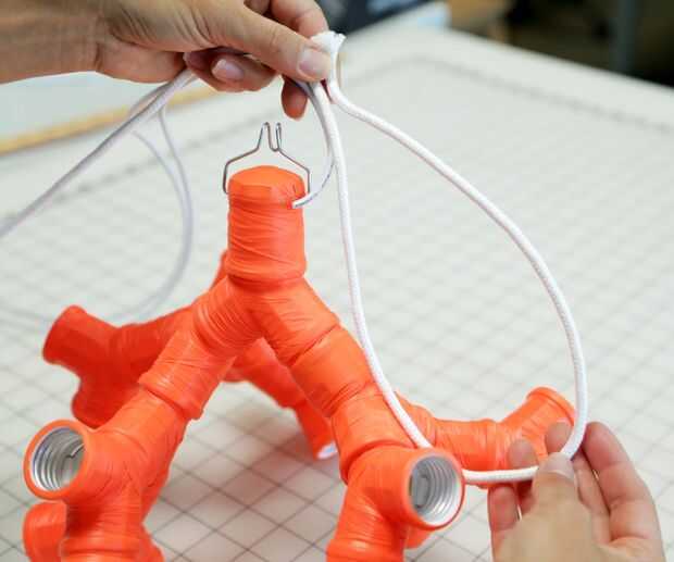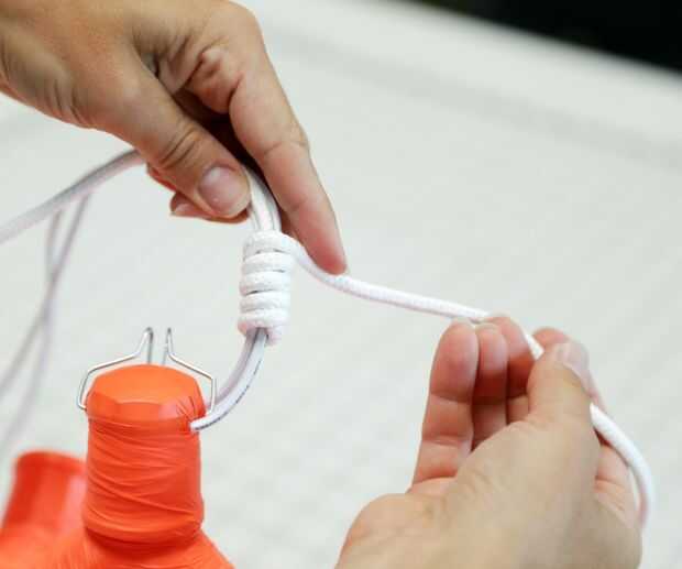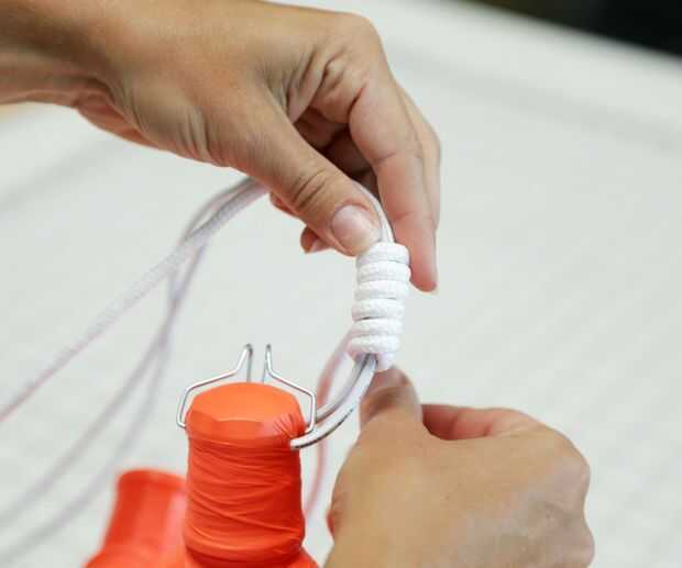 Comience envolviendo la cuerda lejos de usted, alrededor de sí mismo y el cable de la lámpara. Hacer esto hasta que tenga 5-6 vueltas.