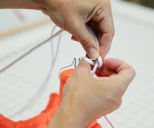 Para hacer el nudo superior, comenzar con una cola de 18" de la cuerda.