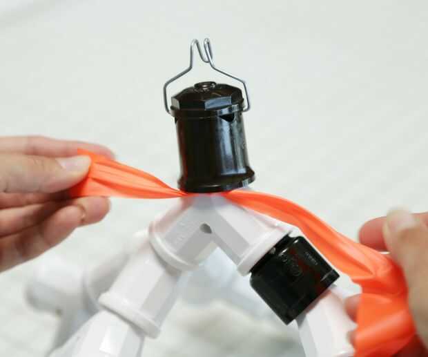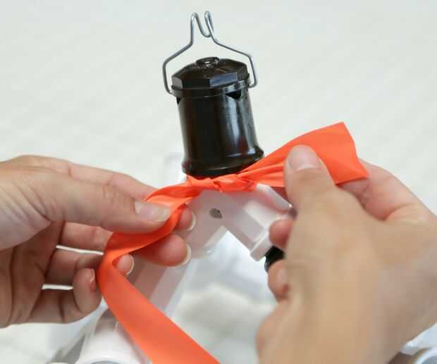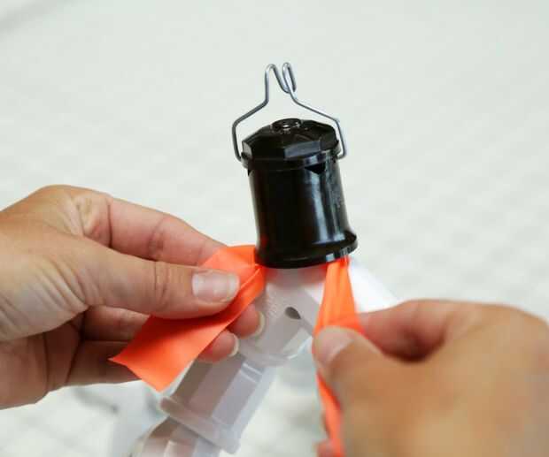 Dejando la cinta conectada a la lista, haga un nudo alrededor de donde se conectan la toma superior y la primera 'Y'. Esta es su ancla/a partir de punto. Asegúrese de dejar una cola de 3-4" en el extremo no conectado al rollo. Va a utilizar esto para atar el extremo una vez que usted ha envuelto toda la pieza.