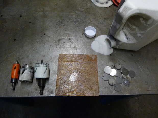 2. se necesita el material de la tubería y un agujero vio con un interior diámetro igual al diámetro exterior del tubo. Utilizará el serrucho para cortar tapones para los tubos - eso es para qué sirve el pequeño cuadrado calibre 16 + del metal de hoja, cortar los tapones de. .