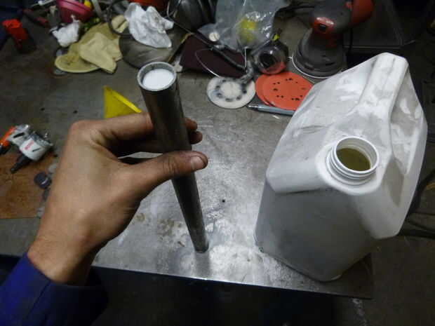PUNTA - siempre mantenga el tubo vertical durante la soldadura... confía en mí... no diversión al es verter arena y tu intentar soldarlo. Uso de un soporte de reparación de bicicleta es perfecto para esta operación.