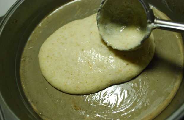 Mi abuela dijo que otra forma de medir es hornear las capas en una bandeja boca abajo la torta, para que la masa perfectamente había cubierto "superior" sin goteo sobre el borde.  No voy a hacer eso.
