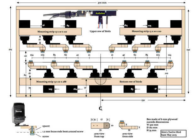 Mi base era bastante compacto. Sería más fácil hacer más grande y cosas del espacio hacia fuera. Usé 12 barato (€6,59) y servos alegres.