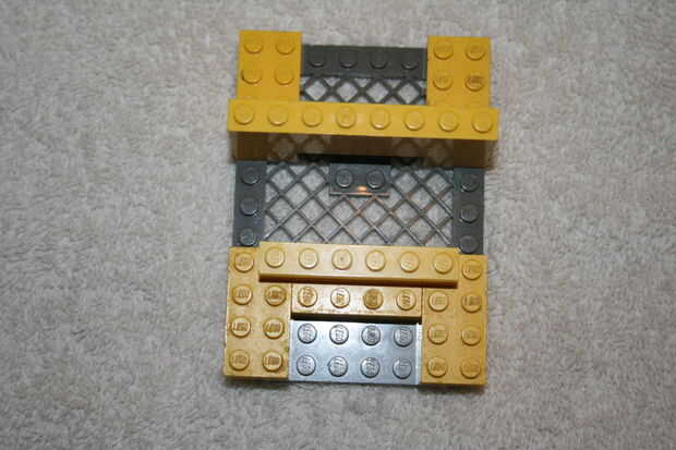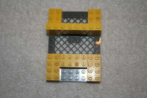 C. luego, coloque su ladrillo de 1 por 6 encima de los tres de los ladrillos frente 2 por 4 en cuadro 3.