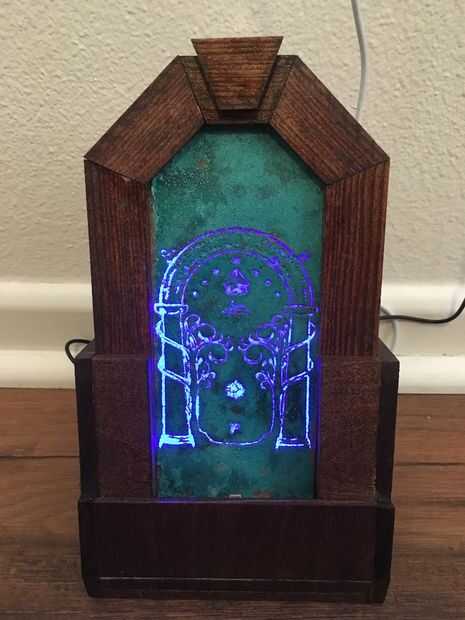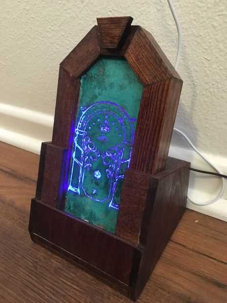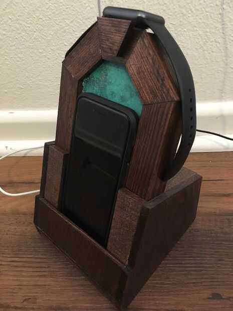 Este es mi proyecto del iPhone con temas de puertas de Durin y estación de acoplamiento de iWatch. Tenía metas muy específicas con este proyecto. En primer lugar, quería ser capaz de acoplar mi iPhone en su caso. En segundo lugar, quería que parte de puerta de Durin a brillar como si fuera la luz de luna. Por último, quería ser capaz de acoplar ambos el teléfono y ver con sólo una mano. Con esos objetivos en mente, comencé a trabajar en un diseño. Como esta estación de acoplamiento está diseñada desde cero para mi teléfono y caso y mi reloj, cualquier dimensión tendrá que modificarse para adaptarse a su proyecto.